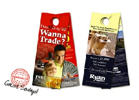 Whether you plan on walking the neighbourhood or hiring a delivery service, your message is sure to gain attention. Essential for hotels and models Utilize full colour door hanger printing for advertising political campaign's, seminar's, event's, menu's or any local activity.